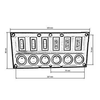 Kapcsoló 12/24V IP68 ON-OFFx6, 6xB 3x5A 2x10A 1x15A, LED IP68